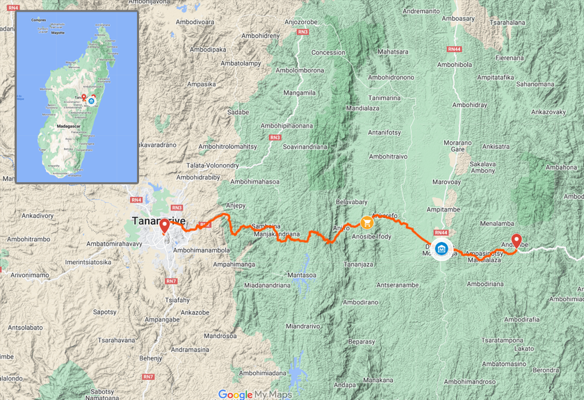 Musée de la Gendarmerie de Moramanga Tananarive Reserve Peyrieras Hotel Feon' Ny Ala Situation de l'étape du jour dans Madagascar